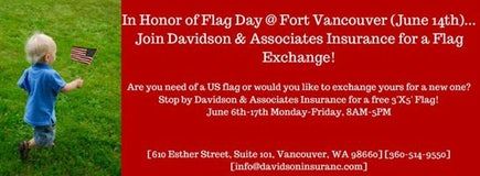 Davidson & Associates Insurance is excited to resume their annual flag day exchange in 2022. They invite community members to stop by their office to exchange old flags for a new, 3x5 flag. The organization is...